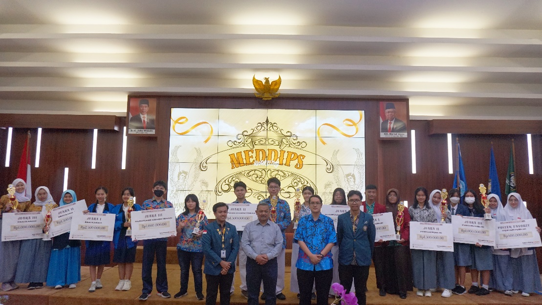 Semarang, 26-27 August 2023, the Final Round of the competition for SMA/MA/equivalent students throughout Indonesia entitled MEDDIPS 2023 Medical Olympiad and Research Competition for Senior High School Students was officially held. This competition was a competition organized by the General Medical Student Association (HIMA KU) FK UNDIP which received full support from the Dean of the Faculty of Medicine, Diponegoro University. This activity is a collaboration between the HIMA KU Pendpro Division, HIMA KU Hublu, HIMA KU Research, Dimer-C Bureau and Amsa Bureau which holds several competition branches, such as: