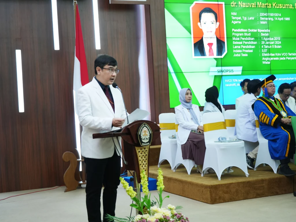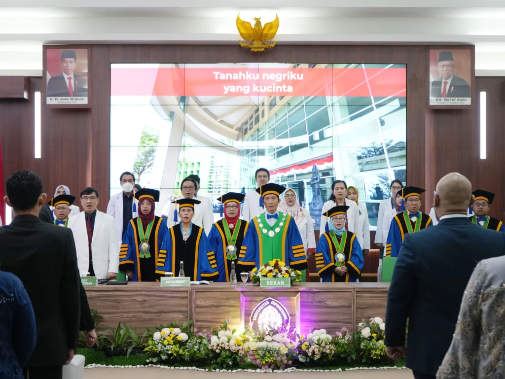 Acara dimulai dengan menyanyikan lagu kebangsaan Indonesia Raya dilanjutkan dengan pembacaan nama-nama dokter spesialis baru oleh Ketua Departemen Kedokteran, Dr. dr. Trilaksana Nugroho, M.Kes., Sp.M(K), FISCM, FICS. Momen ini merupakan penghargaan atas kerja keras dan dedikasi yang telah diberikan oleh para dokter spesialis selama masa pendidikan mereka. Setiap nama yang disebutkan disambut dengan tepuk tangan meriah dari hadirin, menandakan kebanggaan dan harapan yang besar terhadap para lulusan.