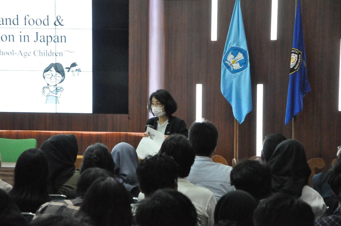 Dilanjutkan dengan kuliah bertema School Lunches and Food & Nutrition Education In Japan oleh Dr. Satoko Okabe. Ditampilkan sebuah data dalam bentuk tabel bahwa jumlah ahli diet per 100.000 populasi di jepang adalah 56 ini paling tinggi dibandingkan negara-negara maju lainnya, tampaknya ini salah satu faktor mengapa jepang memiliki diet yang baik dan higienis.