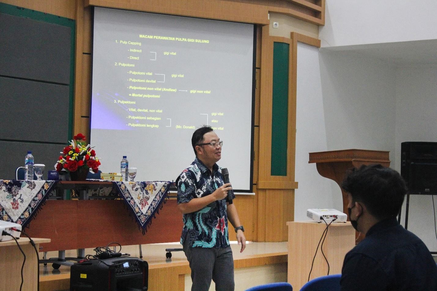 Dr. drg. Sandy Christiono, Sp,KGA dalam kesempatannya menyampaikan materi dan pengetahuan baru guna menambah wawasan mahasiswa. Diantaranya, beliau menjelaskan bagaimana cara mendiagnosa penyakit pasien dengan baik dan benar.