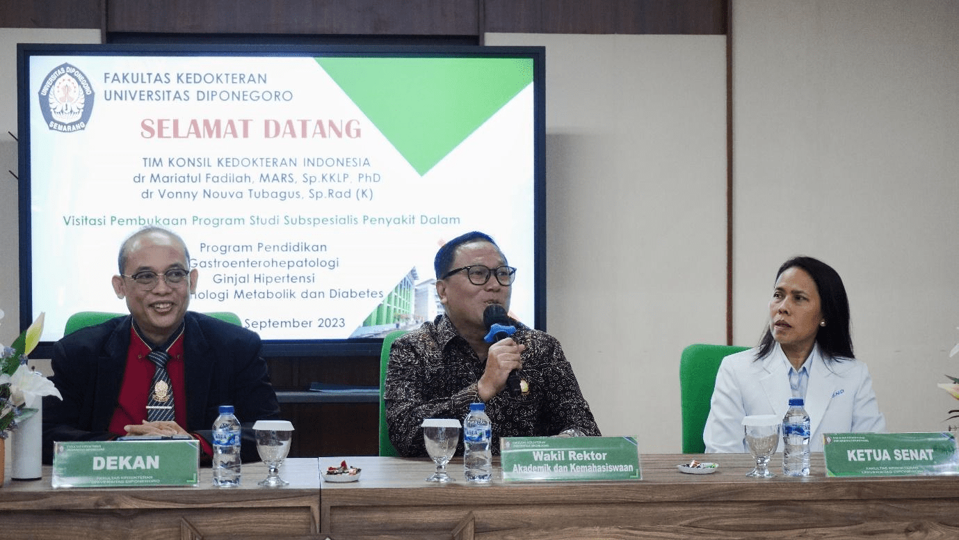 Jumat, 1 September 2023. Fakultas Kedokteran Universitas Diponegoro mencatatkan tonggak sejarah baru dalam dunia pendidikan kedokteran dengan menggelar visitasi untuk pembukaan Program Studi Subspesialis Penyakit Dalam pada hari Kamis (31/8) di Ruang Serbaguna, Gedung A Dekanat, Tembalang. Acara yang berlangsung dari tanggal 31 Agustus – 2 September 2023 ini merupakan bentuk komitmen kuat Fakultas Kedokteran UNDIP untuk meningkatkan kualitas pendidikan kedokteran dan menghasilkan dokter-dokter yang berfokus pada pengembangan keterampilan diagnostik yang canggih dalam penguasaan ilmu penyakit dalam.